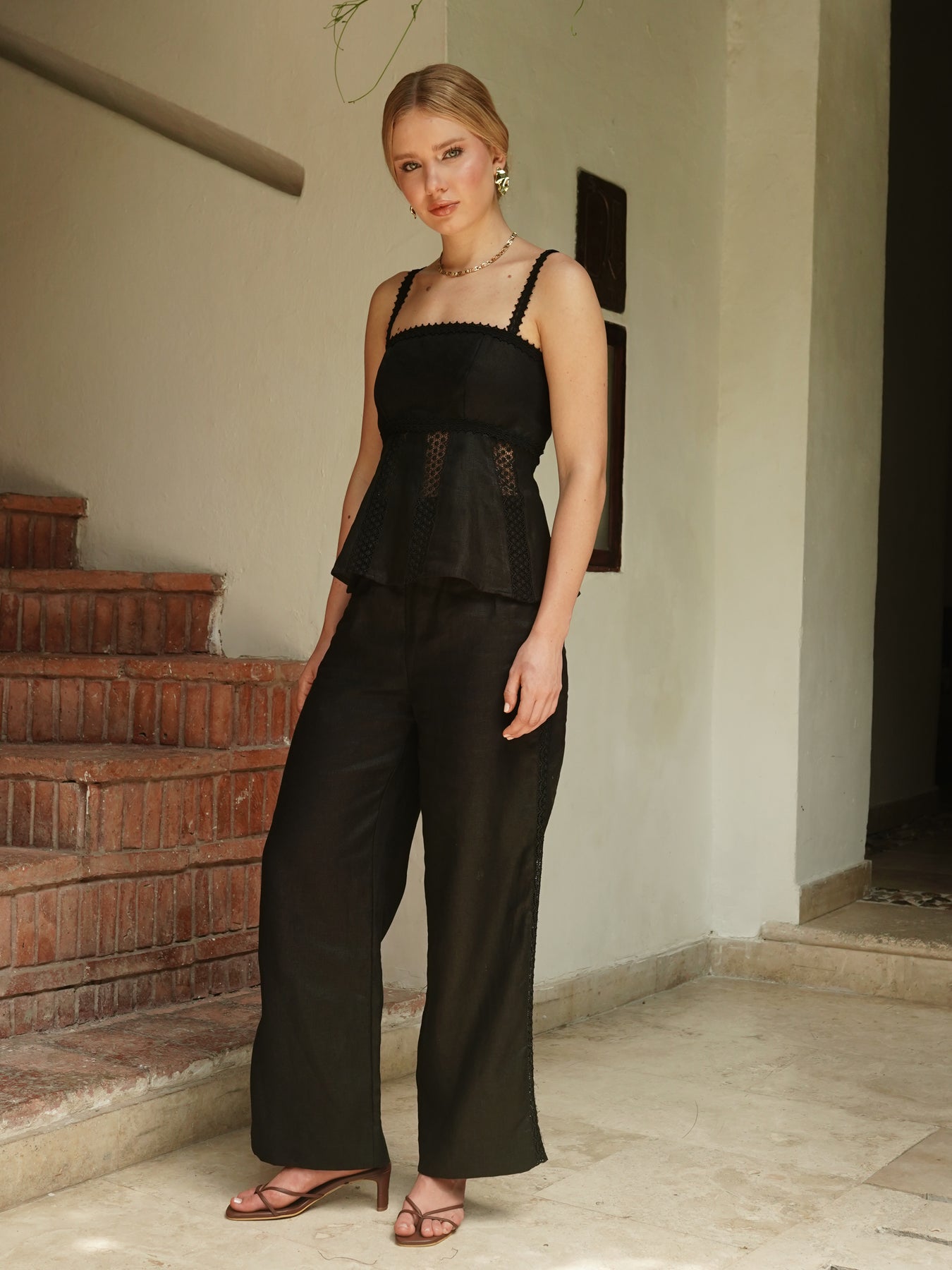 El pantalón Amaris combina comodidad y durabilidad con una cuidada mezcla de 50 % lino y 50 % algodón. Esta equilibrada composición crea un tejido transpirable que se adapta a tus movimientos durante todo el día, manteniendo su forma y estructura. Perfecto para climas cálidos, la mezcla de lino y algodón ofrece propiedades naturales de absorción de la humedad y una sensación suave y relajada al tacto. Ideal para ropa casual sin sacrificar la calidad.
